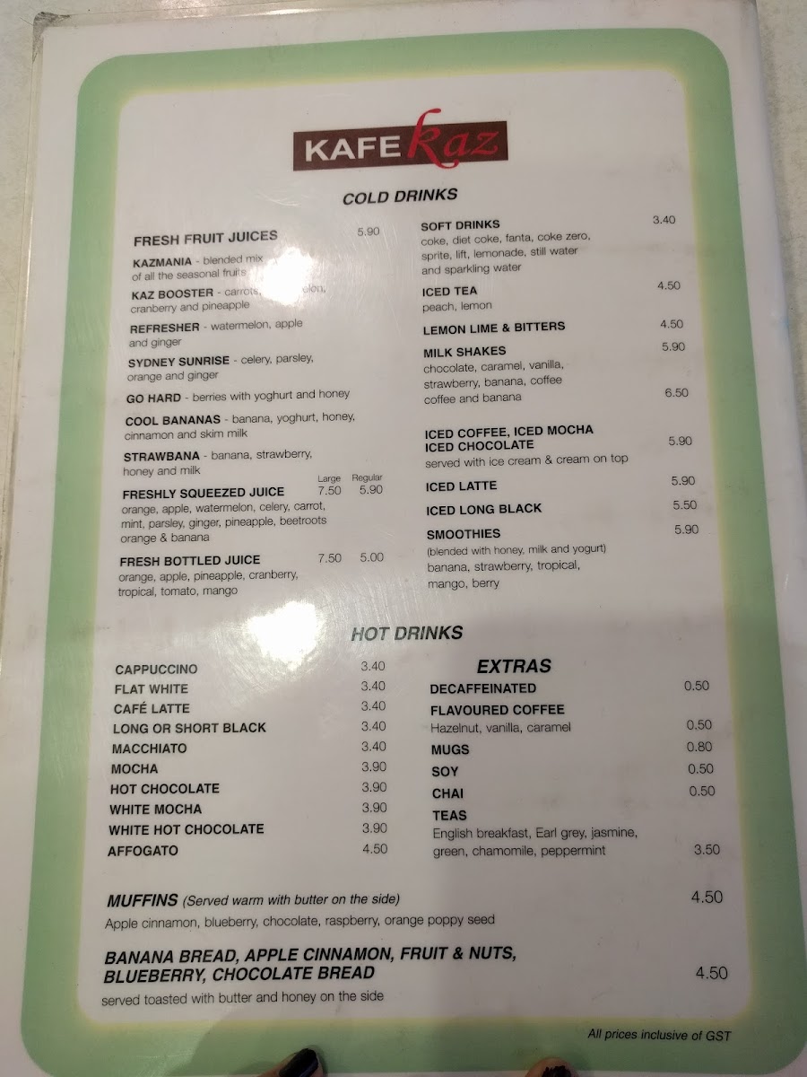 Welcome to Kafe Kaz, a charming cafe nestled in the heart of Sydney at 385/391 Pitt St. Known for its inviting atmosphere and delicious offerings, Kafe Kaz caters to both locals and tourists seeking a delightful culinary experience.